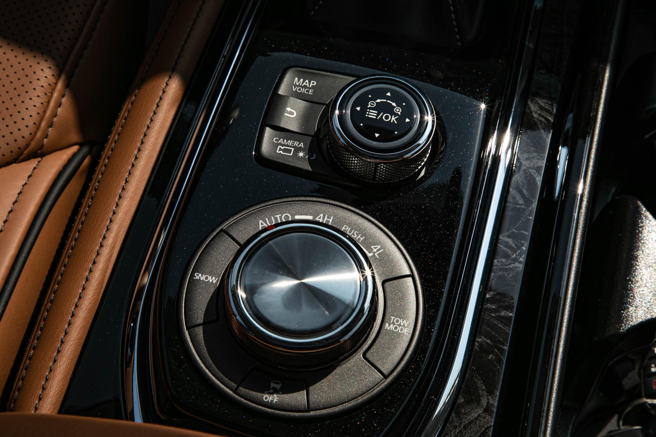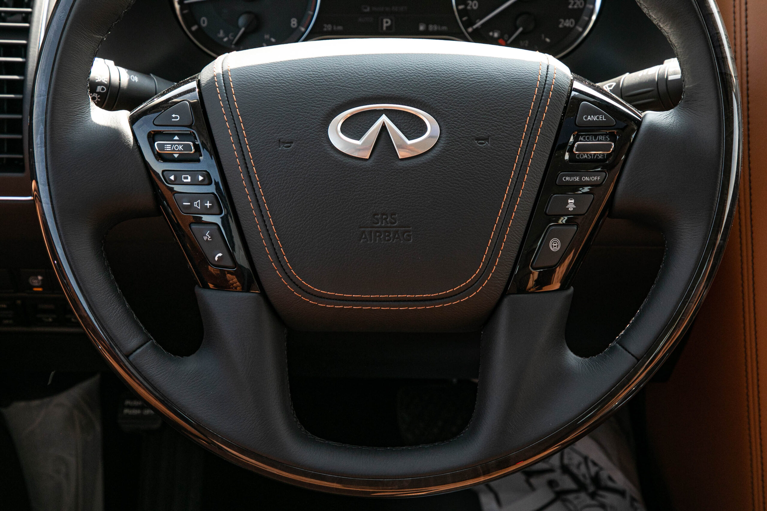 Semi Aniline Leather & Simulated Wood Grain Combination Steering Wheel (Infiniti)